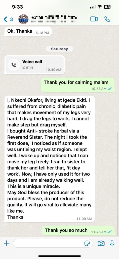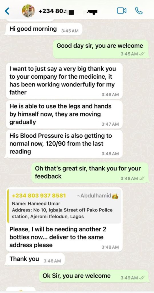 “After my dad’s stroke, we introduced him to Anti Stroke Herbal Capsules. The transformation has been unbelievable. His speech is clearer, and he’s more active. These capsules are a blessing to our family, and we recommend them to everyone.” – Mr Joel, Abuja